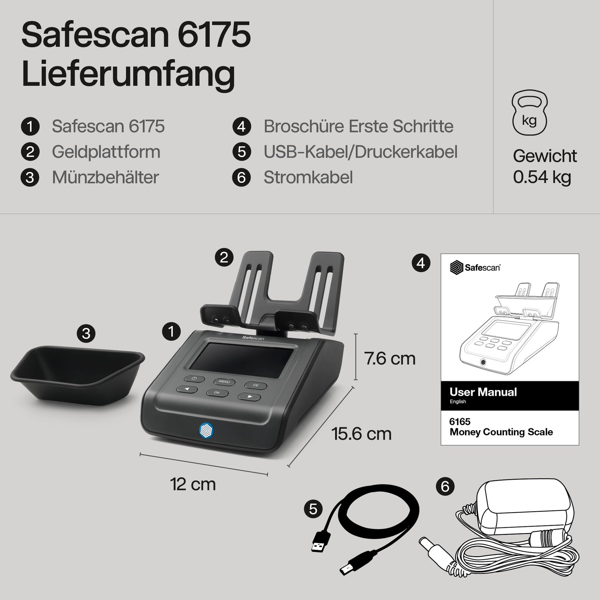 Safescan 6165 Geldwaage | Zählt Münzen, Banknoten, Chips & Voucher | Automatische Münzrollenerkennung