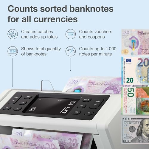 Einzelheiten: Safescan 2210 Geldzählautomat Zählautomat Sortierte Geldscheine - Bargeldzählmaschine mit 3-Punkt-Falschgeld-Detektor - Sortierter Geldzählautomat für alle Währungen